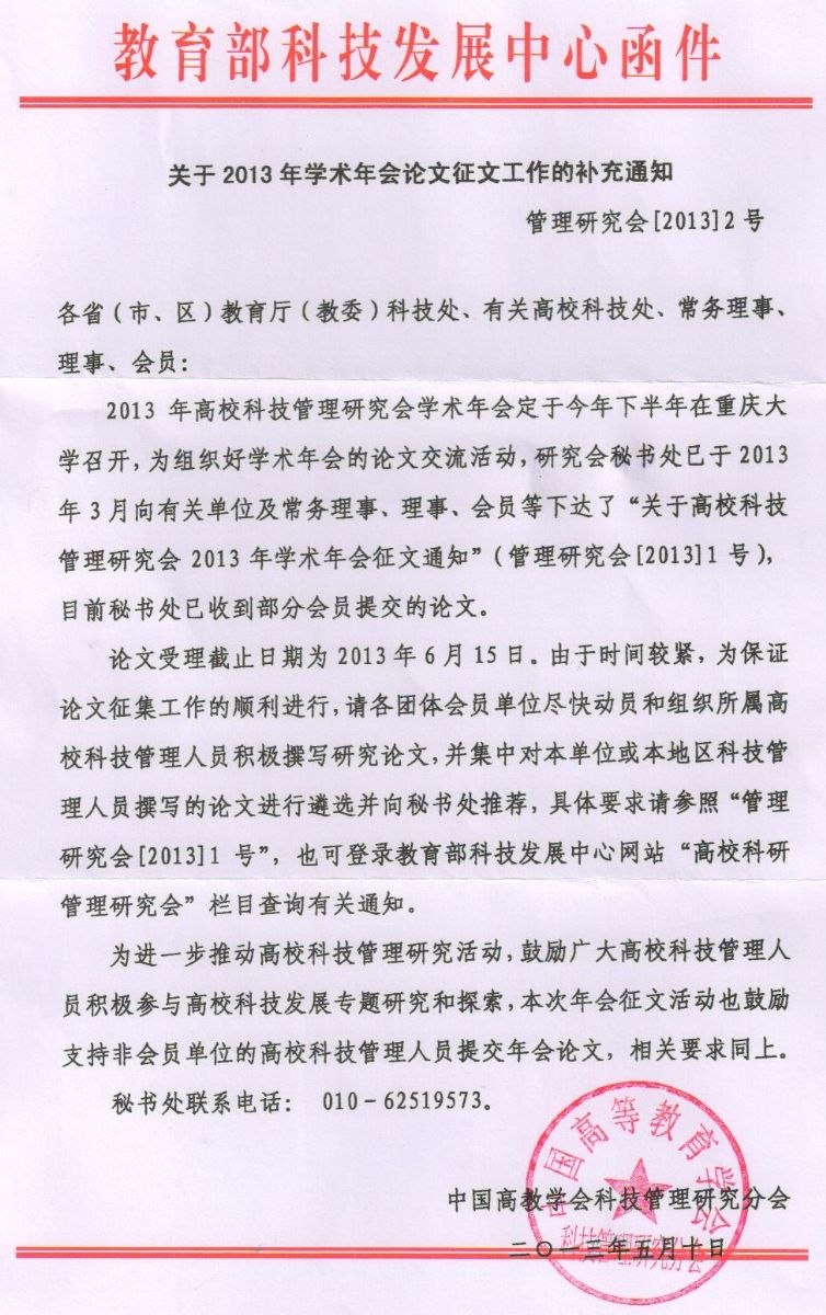 关于2013年学术年会论文征文工作的补充通知