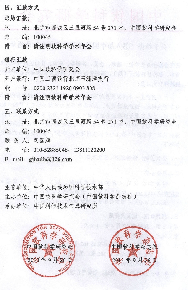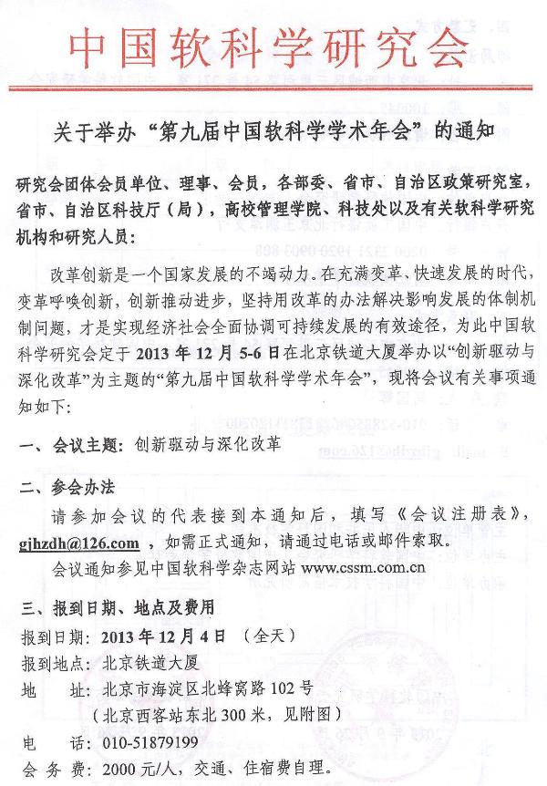 关于举办“第九届中国软科学学术年会”的通知
