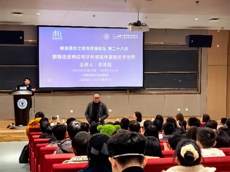 创新港校区涵英楼报告厅成功举办。本次论坛以“跟我走进两位匈牙利诺奖作家的文学世界”为主题,特邀余泽民教授担任主讲嘉宾,余教授是旅匈作家、匈牙利语翻译家,中国作家协会会员。他先后翻译包括2002年诺奖作家凯尔泰斯、2025年诺奖作家克拉斯诺霍尔卡伊多部作品在内的近三十部作品,被匈牙利政府授予“匈牙利文化贡献奖”,被称作“当代匈牙利文学的中国声音”。国产探花