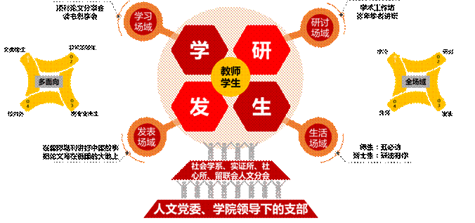 以2022年入选“全国党建工作样板支部”培育单位为契机,社会学系党支部精准对接师生科研生活中的“急难愁盼”,聚焦学习、研讨、发表、生活四大场域,系统构建“学-研-发-生”全链条、全场域师生服务平台。推动服务工作从“碎片化”向“体系化”发展。