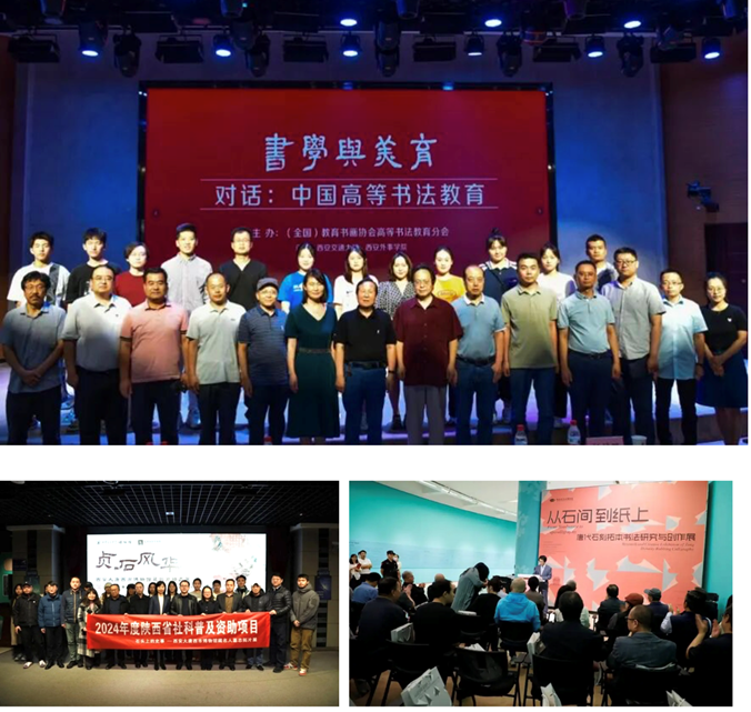 搭建学术平台,涵养治学风气。积极邀请白谦慎、周斌、黄惇、[意]毕罗、张其凤、骆芃芃、方爱龙、祁小春、陈根远、陈志平、杨勇等国内外知名专家学者赴“墨薮讲堂”进行学术讲座;师生广泛参与相关学科建设研讨会,营造浓厚学术氛围。2024年成功举办“问道石门”全国书法作品展暨学术研讨会,2025年成功举办由陕西省书法家协会主办、陕西省书法家协会学术委员会与国产探花