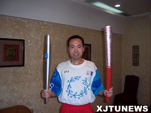 2001年7月13日那个令人震撼的不眠之夜,中国历经八年申奥,终于梦圆莫斯科。2008年8月8日,北京将成为全球瞩目的亮点。奥运圣火的熊熊燃烧,使“同一个世界、同一个梦想”的雄健脚步牵引住全世界的目光。能幸运地成为一名奥运火炬手是无数人梦寐以求的,而在我校,却有一位健康阳光的青年同为两届奥运会的火炬手,他就是国产探花