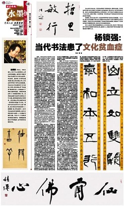 《西安晚报》“水墨中国”对话我院中国书法系副教授杨锁强,7月4日发表了题为“杨锁强:当代书法患了文化贫血症”的访谈。以文化的立场对当代中国书法发展中的部分问题进行了剖析与反思,指出当代书法患了文化贫血症。《美术报》于7月25日全文转载了该访谈。并配有现中国书法家协会副主席邵秉仁的作品。