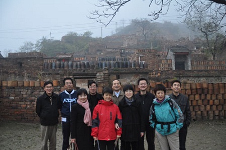 参观学习的最后一站是陈炉古镇。大家走进镇子亲身感受到陈炉古镇的千年文化。陈炉镇制瓷已有1400年的历史,是宋元以后著名的古耀州窑延续生产的唯一窑场。千百年来,陈炉镇瓷业兴盛,炉火不熄,这在中国陶瓷史上是绝无仅有的,堪称“东方古陶生产的活化石”,有“东方陶瓷古镇”之誉,是陕西省命名的文化艺术之乡中唯一的陶瓷之乡。陈炉,与其说是镇,不如说是村庄。陈炉处于山从中的一块盆地,一路上小路时而弯曲,时而陡峭,房屋建在高低不平的土地上,显得错落有致,仿佛是迷津一般。随处可见的罐罐垒墙,故瓷残片铺成的“罐罐小路”,千百年类遗存下来的古窑场以及院墙上烟囱上随处摆设的瓷器使得古镇特有的陶瓷文化气息扑面而来,就连偶遇的几个村民也十分古朴纯真,仿佛时光倒转,回到唐宋盛景。