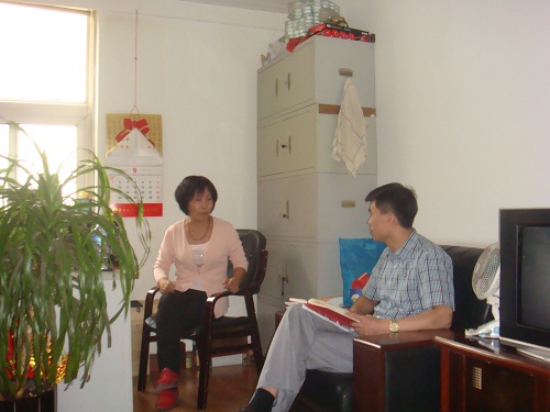 调研组成员杨江华老师对南开区长虹街盛达园社区居委会负责人进行深入访谈