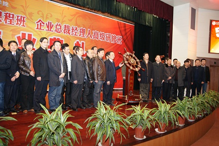 企业总裁经理人高级研修班(三期)毕业学员向学院赠送礼物“领航舵”
