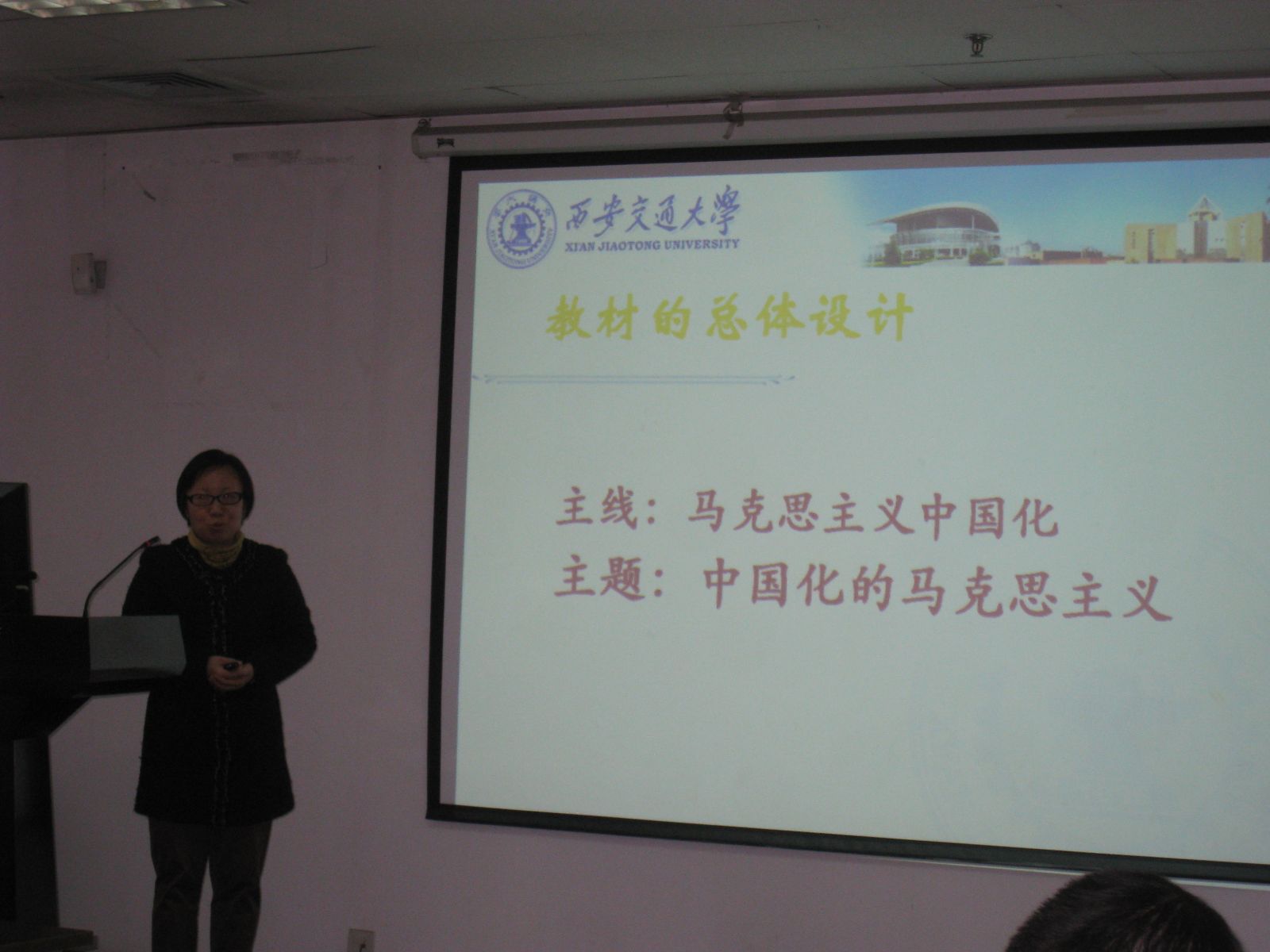 在教学研讨中,首先由雷巧玲老师、任培秦老师就《毛泽东思想和中国特色社会主义理论体系概论》课“第一章马克思主义中国化两大理论成果”和“第二章 新民主主义革命理论”的教学目的、教学重点难点、教学专题设计、教学思路进行讲解说明,并对反映其教学设计和教学组织的PPT进行了展示。然后与会老师就这两章的教学专题设计和教学组织展开了讨论,提出了完善、改进、提升的具体建议。与会老师认为:思想政治理论课教学专题设计、教学过程组织一定要有问题意识,以问题导入课堂教学,以问题引导学生思考,才能使学生“坐得住”、“听得进”;教学中要对重点内容展开精讲,在教学内容的理论深度上下功夫,使学生通过课程学习在思想认识上“有收获”。