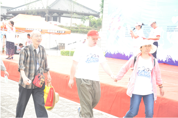 慢跑活动在简短的开幕仪式与慧灵学员们的舞蹈中拉开帷幕,同学们和“大福”们一起环湖慢跑。在慢跑过程中,与身边的智障人士一起聊天、合影,感受他们的慢生活。同时,同学们也加入了志愿者的队伍,协助主办方负责一些游戏环节,并发放礼品。于媛芳老师与慧灵机构的几位负责老师进行了简短的交谈,了解了机构学员的基本状况以及机构的运转情况,并希望以后能有更多的合作,让学生们多接触社会,关注弱势群体,多为社会做一些力