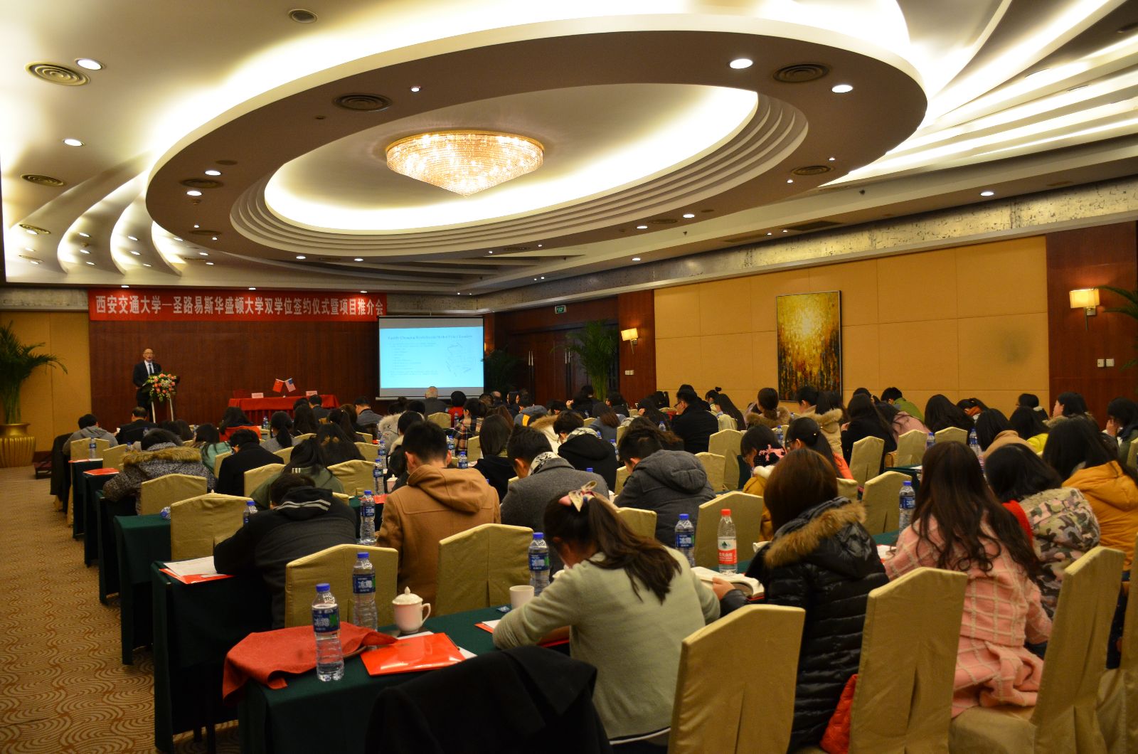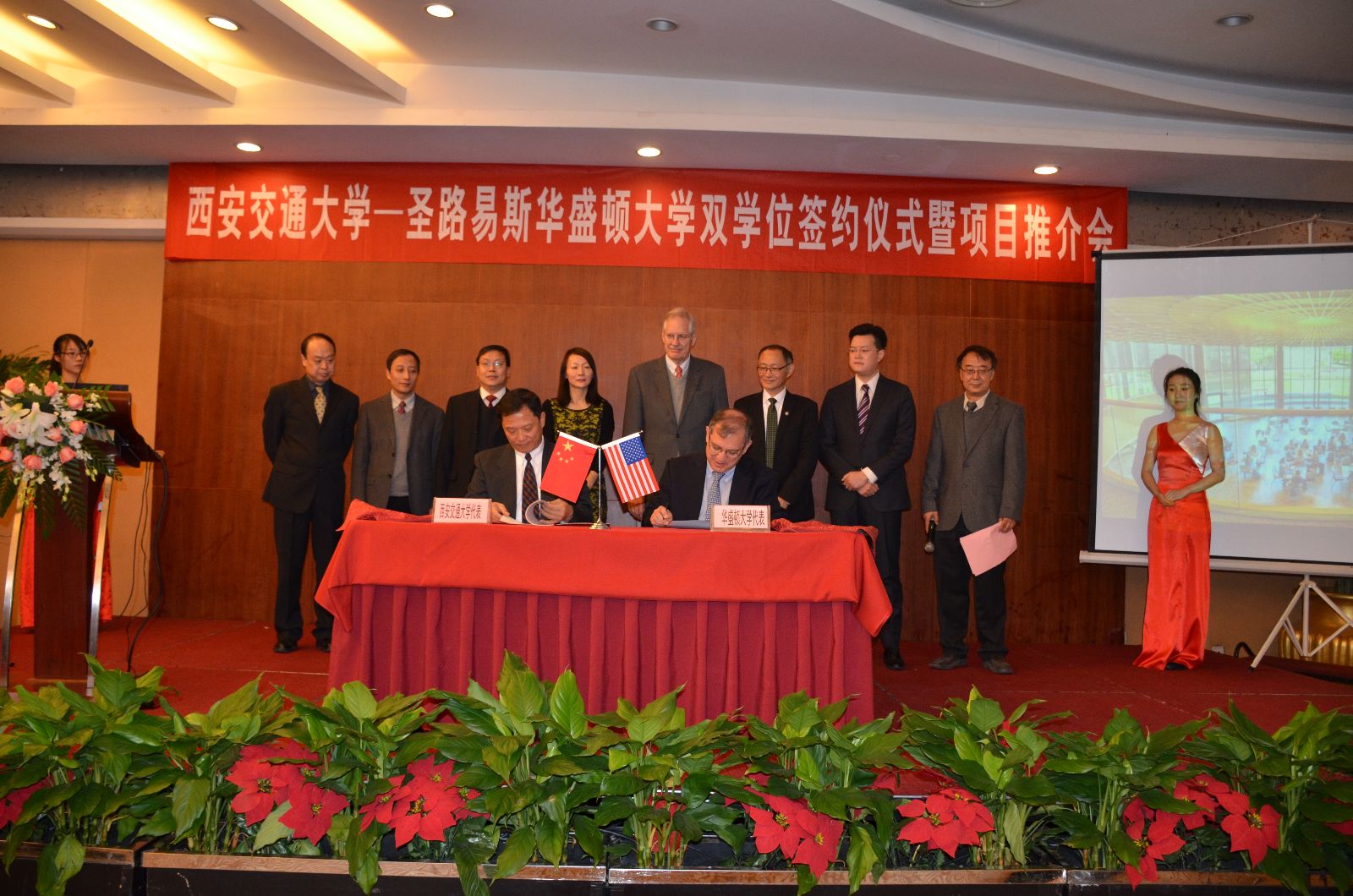 ——圣路易斯华盛顿大学(下称:华盛顿大学)双学位签约仪式暨项目推介会议如期在索菲特酒店举行。圣路易斯华盛顿大学副校长James Werstch、布朗学院院长Edward Lawlor、助理副校长郭申阳教授以及华盛顿大学校友、贝塔斯曼·欧唯特(中国)副总裁徐欣,我校国际合作与交流处处长梁莉、研究生院副院长何茂刚、国产探花