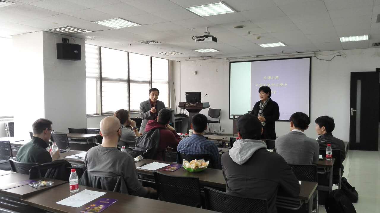 书记马晓彬为留学生介绍了学院整体情况、系所设置、师资队伍。杨院长用生动活泼的PPT为留学生展示了学院于2015年招收的第一届“中国文化研究硕士”留学生班教师授课、社会实践、课外活动等多方面信息。杨院长指出该留学生项目实行学分制度,学生可根据课程的规定选修科目、积累学分,辅以实习实践和实地考察等内容。