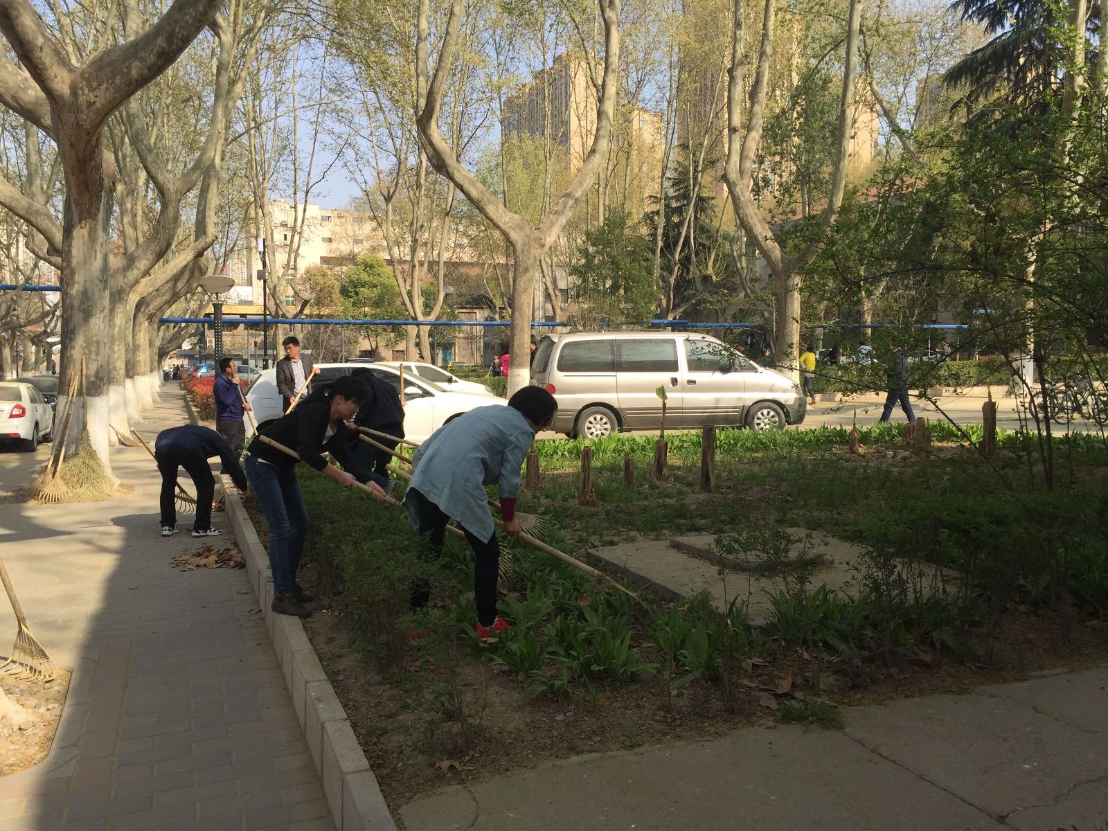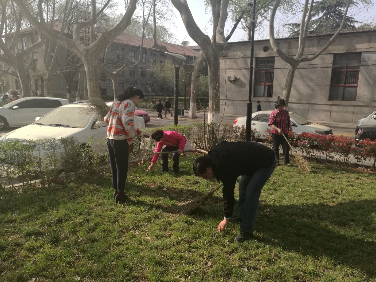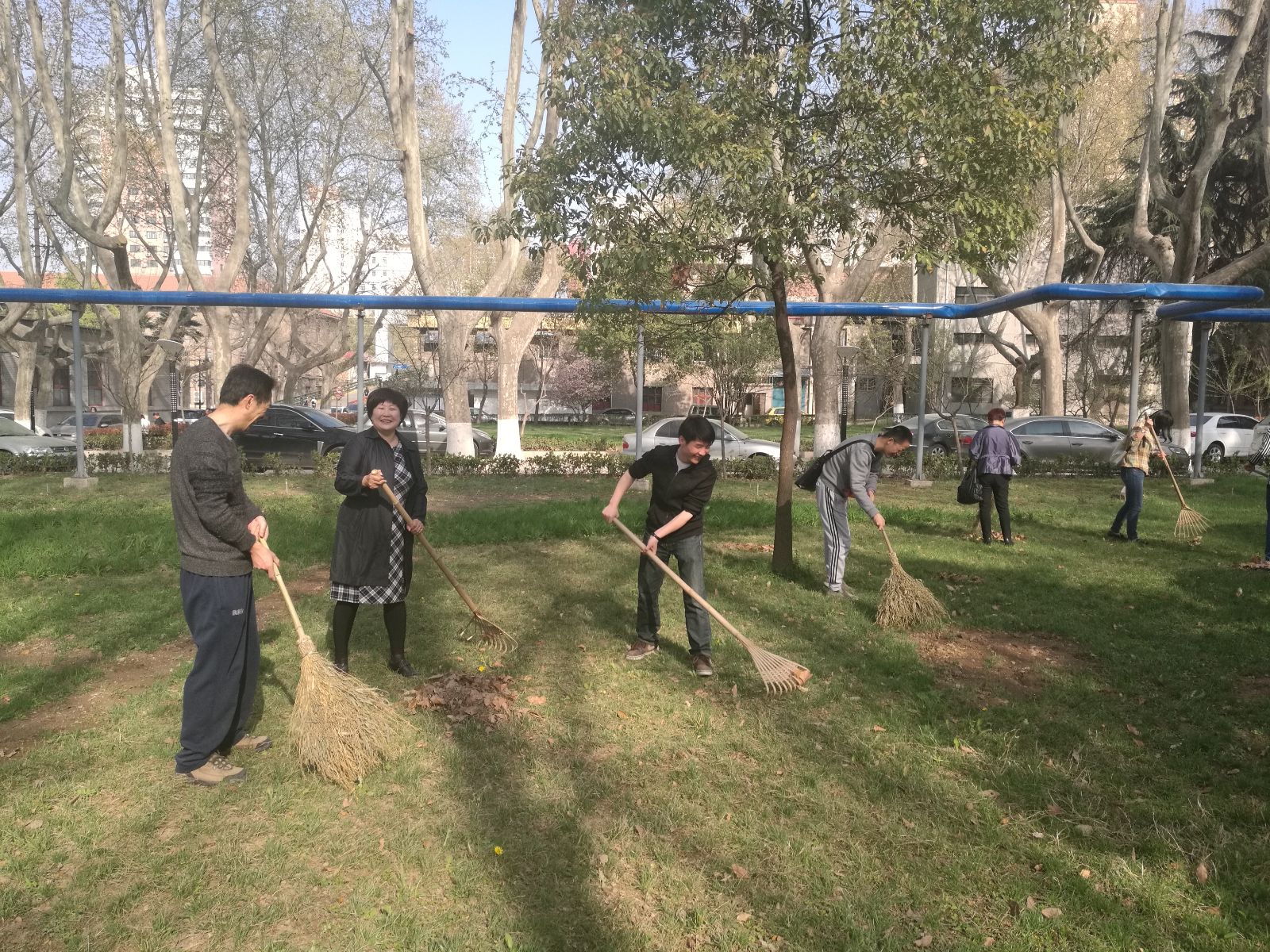 上午10:00~11:00,副书记带队组织学生们在东10宿舍包干区进行整洁校院工作。下午4:00~5:00,在学院领导和7个系主任、支部书记的带领下,40余名教职员工齐上阵,再次来到学院整洁校院包干区即东二楼东面和北面绿化带和散水区域。院领导、系主任以及青年拔尖教授们,率先垂范,大家手持耙子或扫帚,将绿花带、草坪以及小竹林中的落叶等垃圾清理出来,东二楼东侧和北侧区域一派热火朝天的劳动景象。展现着全体师生对学校的热爱,对双甲子校庆的期盼。