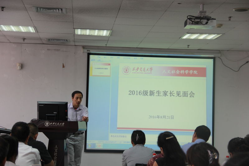 在主楼E703召开了2016级新生及家长见面会。边燕杰院长,马晓彬书记,副院长李明德老师、李黎明老师、杨建科老师,副书记李重老师,院长助理薛卫真老师,中文系系主任李慧老师,书法系系主任薛养贤老师以及马克思主义学院副院长刘儒老师、燕连福老师,新生班主任及上百名新生家长参加见面会,见面会由国产探花