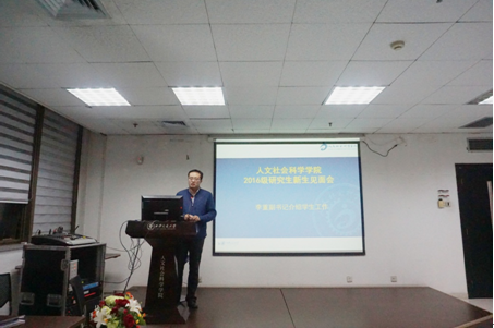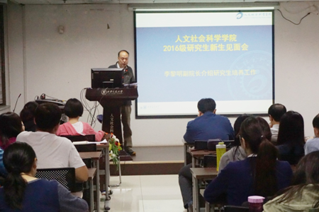 研究生的培养工作。他对我校我院硕士研究生2-3年、博士研究生3-6年弹性学制进行了详细解读,对学位培养工作从开题到最终答辩学生需要注意的各个事项进行了细致说明,对奖助学金、出国交流等有关学生学业的具体情况进行了介绍。李黎明副院长希望我院新生要重视在校的学习,规划好自己的学习生活,建立自主、自信的研究生生活。
