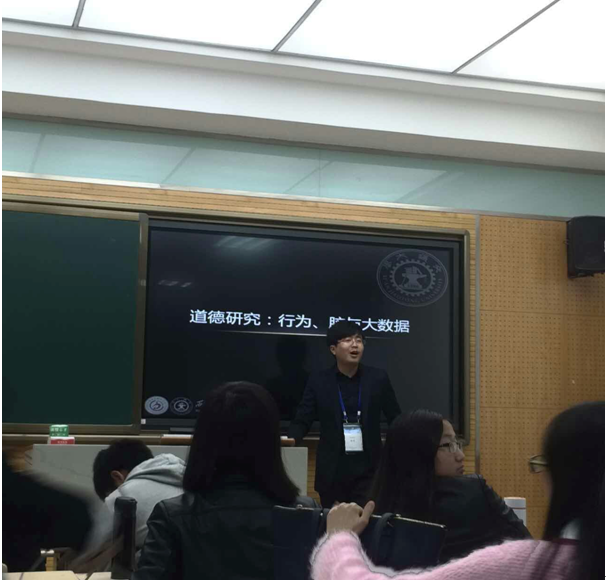 作为该专题讨论会的组织者与主持人,社会心理学研究所的喻丰教授基于大数据深入分析了当代人们眼中的道德滑坡现象,精彩的学术报告赢得了在场师生的阵阵掌声。此外,社会心理学研究所的青年教师韩婷婷博士也报告了她关于道德相对主义判断的研究,引发众多参会学者的热烈讨论。
