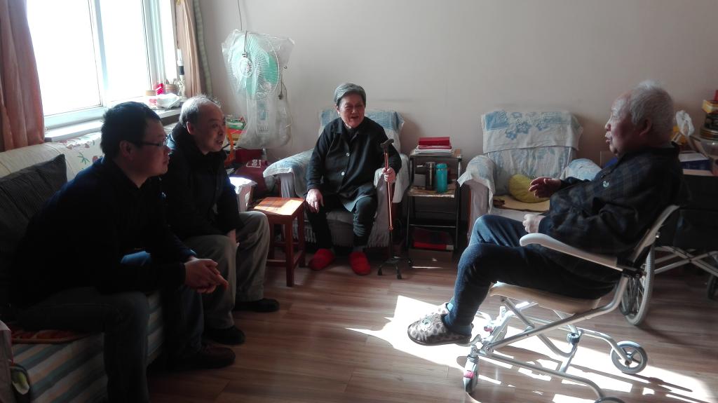 在老同志们的家中,马晓彬书记和李黎明、杨建科副院长代表学院给他们送去了全院师生的关心、问候和祝福,并送上新春慰问品。向老同志们介绍了2016年学校和学院发展动态,倾听老同志对学院发展的意见和建议。并关切询问他们的生活状况。老同志们对看到、听到的学校和学院的新变化,感到欣慰和激动。