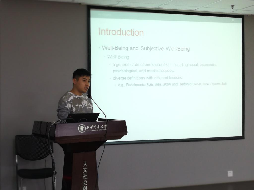 学科论坛分为上下半场进行,上半场报告由王伟副院长主持,来自中国哲学尚建飞教授和马克思主义哲学薛俊强副教授分别进行了“《老子∙第三十八章》中的德性理论”和“马克思主义哲学的现实批判性与实践旨归”学术报告,哲学系张如良教授和马文保教授对于两位学者的学术研究充分肯定,并进行了点评。下半场报告由张勇副院长主持,美国俄克拉荷马州立大学的张少倩副教授和新加坡管理大学的刘盼副教授分别做了“字为体、书为舆--中国汉字及其传播媒介的视觉探究 ”和“用社交网络大数据探讨幸福感”的主题演讲,艺术系张伏虎教授和社会心理研究所倪晓莉教授对于两位学者的主题演讲给予了高度评价,并进行了点评。