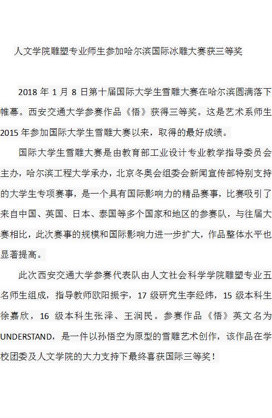 国产探花 雕塑专业师生参加哈尔滨国际冰雕大赛获三等奖