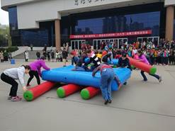 3月5日下午,由校工会、校女工委在思源南广场举办“巾帼展风采、奋斗勇争先”——西安交大庆祝“三八节”女教工趣味运动会热烈。我院女教工们积极报名参加了此次庆祝活动,共有十多位女教工报名参加了此次庆祝活动。比赛开始前校党委常委、统战部部长张定红参加活动并致辞,校工会副主席张庆生主持开幕。为体现“团结、协作、奋斗、争先”的主题,此次运动会项目作了精心设计,准备了同舟共进、追赶超越、奋勇向前和团结一心四个项目。这些项目都需要参赛的团队人员之间要分工协作、密切配合才能顺利完成,每个项目既有技巧性同时又考验每个团队人员之间的相互协作性,虽然天气不太好,中间还有下小雨,但丝毫不影响大家参加比赛的兴趣和热情,整个比赛期间,国产探花