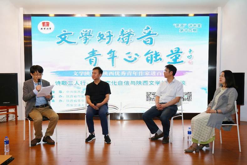 中文系和教职工读书协会协办,搭载思源讲书堂文化交流平台,以“诗歌三人行·民族文化自信与陕西文学传统漫谈”为主题展开。到场的三位主讲人分别是:中国作协会员马慧聪(陕西省青联委员,陕西省作协理事,《延河》下半月刊主编),中国作协会员马召平(陕西省作协理事,高级记者,陕西广播电视台新闻评论部副主任),中国作协会员宁颖芳(陕西省作协理事,咸阳市作协副主席,《秦都》杂志主编)。陕西省青年文学协会常务副会长王琪,陕西省青年文学协会副会长杨枫、张雅颉,陕西省青年文学协会副秘书长马妤,陕西省青年文学协会办公室主任孙毅超,国产探花