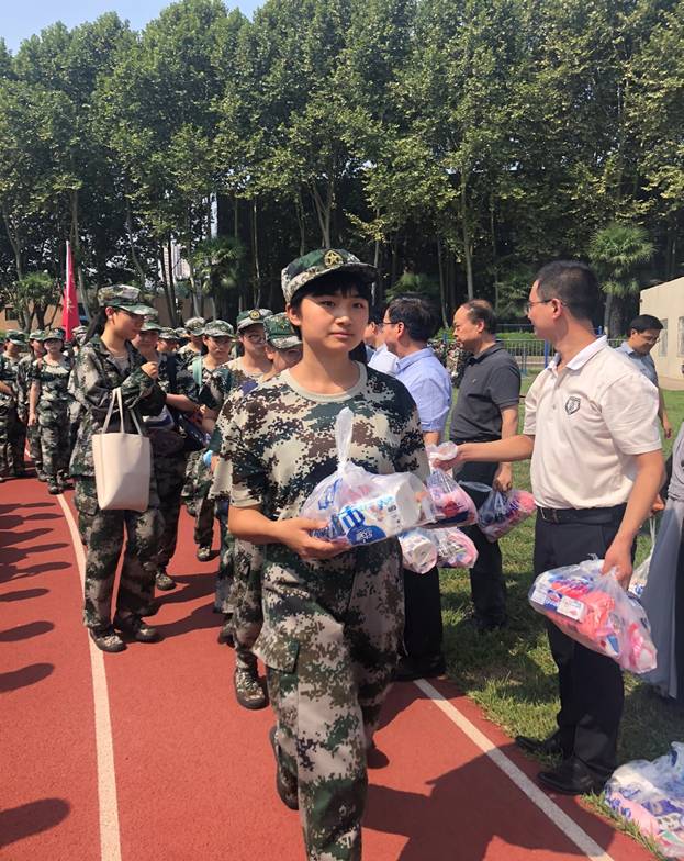 校歌《为世界之光》,展示出新一级交大学子精神抖擞、朝气蓬勃、意气风发的精神面貌。随后,学院领导及各系老师、班主任向教官和学生发放慰问品,并向教官表示感谢。