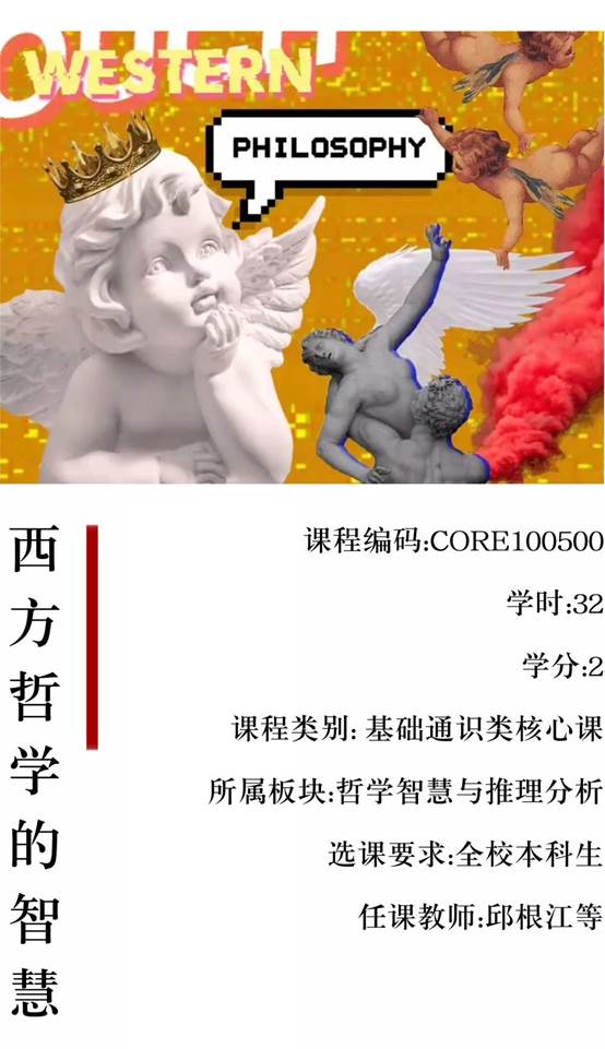 开设通识教育课程的基本出发点是旨在提升同学们的人文素养,通过西方哲学的学习开拓眼界、训练思维、最终使个体灵魂得到滋养。