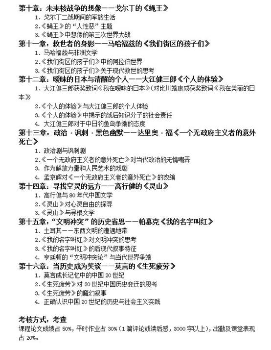 第一节课的时候,我们会给大家发一个本学期的书单,因为课时是有限的,同学们需要将更多的精力放在文本外的东西,上课的过程老师只是作为一个引导者,帮助大家对某一作家和某一作家的作品有一个整体认知,对其艺术特色有一个大致的了解。此外,书单上的书目就是课程论文所涉及的书目。