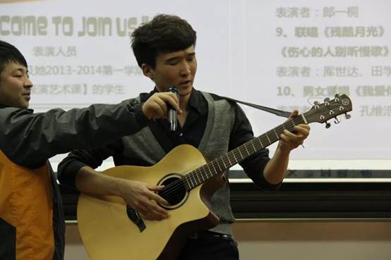 选修这门课程的同学,大都没有过单独表演的经历。第一次让大家上台介绍自己并说一说选修这门课程的想法时,有的同学的裤腿都在抖。通过课程中不断地表演锻炼,有的同学在期末表演会上都能够边唱边跳了。