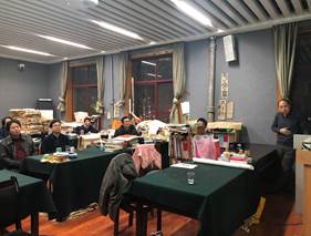 2018年12月24日下午,学院党政领导班子全体成员走访了中国书法系,在东二楼专业研修室召开了学科建设座谈会,会议由李黎明院长主持,中国书法系全体教师参加座谈。