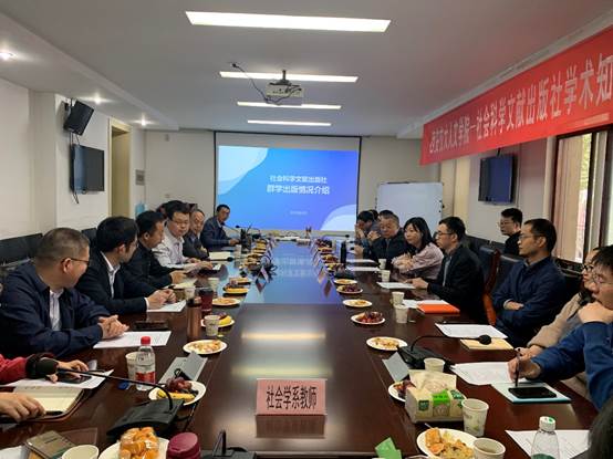 社会学系系主任卢春天教授主持,介绍与会双方后座谈开始。座谈会第一项:观看社会科学文献出版社宣传片。通过7分钟的宣传片,让与会教师对社会科学文献出版社的出版学科范围、出版刊物类型、出版社的定位等都有了清晰的认识。之后,李黎明院长向来宾介绍了国产探花