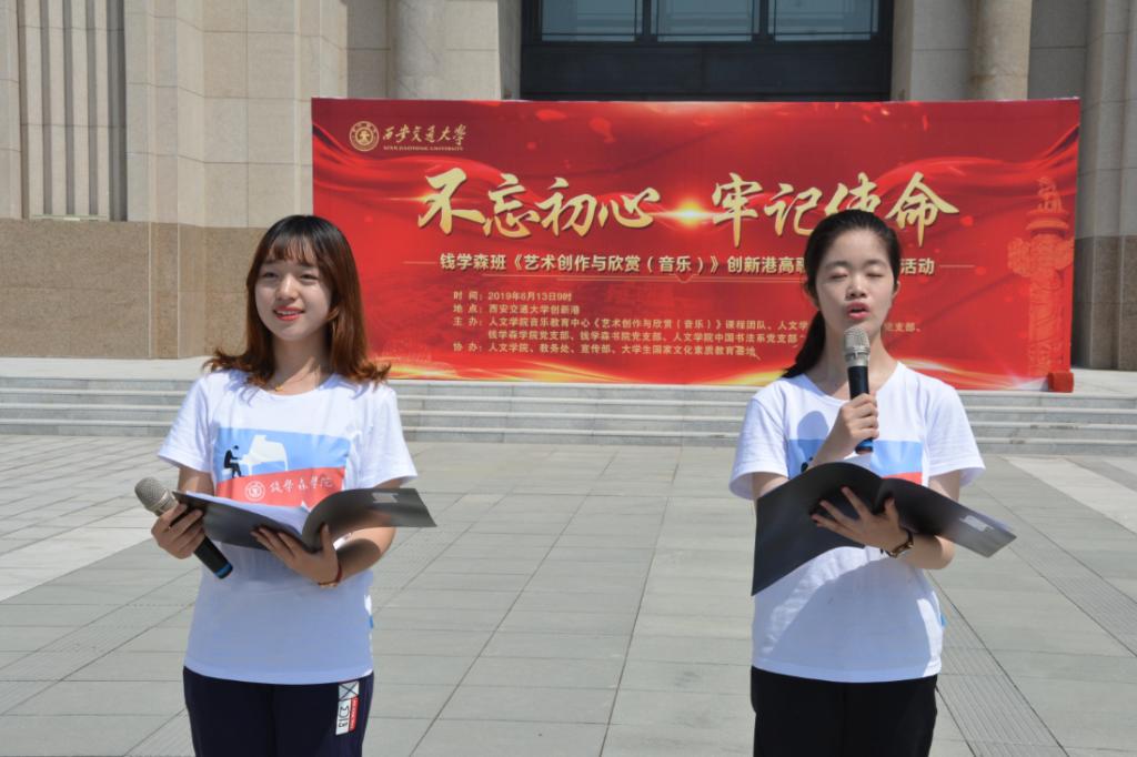 深情的诉说——朗诵,钱学森学院2位同学朗诵了原创作品《献给母亲的歌——创新港高歌颂祖国》,深情表达了新一代交大人在新时代创业奉献的毅力和决心;“创新港开拓,西迁精神浇灌出花朵。花丛中,莘莘学子要创造硕果!用他们的青春和睿智,兑现你的期望与重托!”