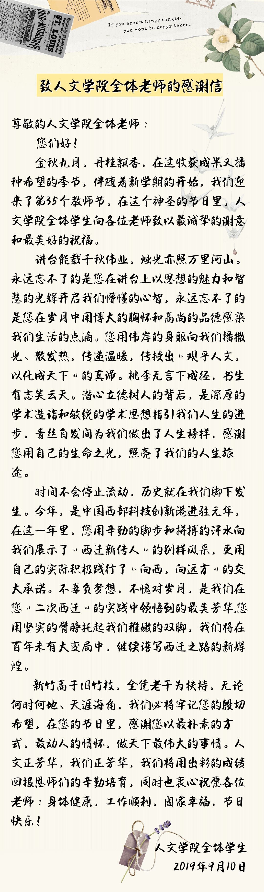 致国产探花 全体老师的感谢信