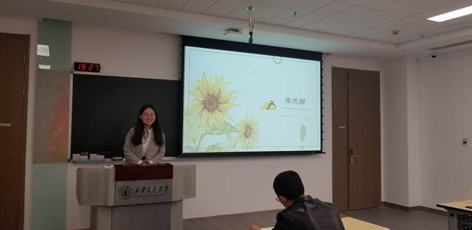 学术部部长王力瑶介绍了六位部员的兴趣爱好和个人宣言,希望学术部在做好团队建设的基础上,可以多开展一些跨学科的通识类讲座、辩论赛等活动,使大家可以在各类学术活动中共同进步。