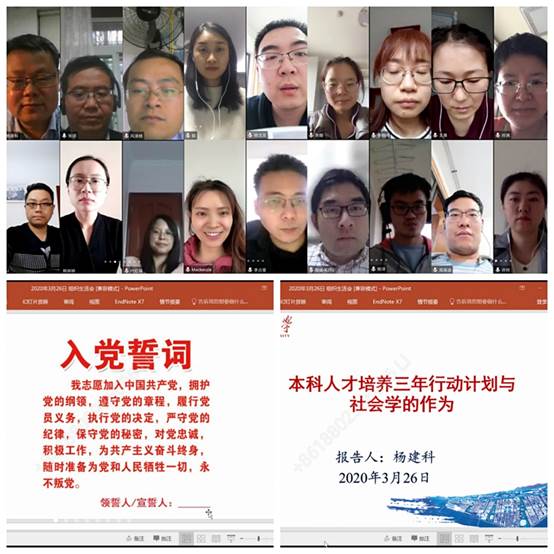 3月26日,社会学系师生联合党支部举行“坚守初心使命”线上组织生活会。会议由支部书记悦中山副教授主持,会议邀请校教务处副处长杨建科教授为支部党员讲党课,全体师生党员参加。