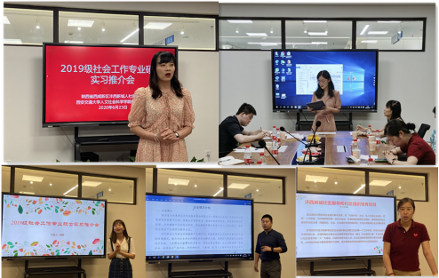 沣西新城人社民政局代表孟珊向社会工作专业师生介绍了实习单位的总体情况以及本单位对于实习工作的需要与要求。随后,参与本次实习工作的各单位与组织,包括陕西省社会组织服务中心天福和园社区项目代表胡妍、沣西新城乐善同方社会工作服务与发展中心代表孟庆珍、全乐居家养老服务中心代表薛峰、国产探花