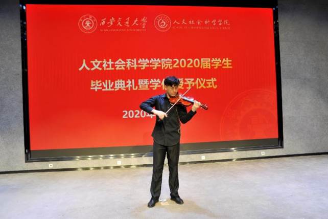 毕业典礼上,苏潼同学代表全体本科毕业生发言。他说到,交大校园让他感受到尊重、包容、踏实和自由,交大人特有的宝贵精神财富让他无惧困难勇往直前,学院和书院的老师们让他人格充盈、专业过硬、富有力量。成长在交大,一路走来,哪怕各种坎坷,各种不顺和阻碍,终能看到花团锦簇、灯彩佳话。