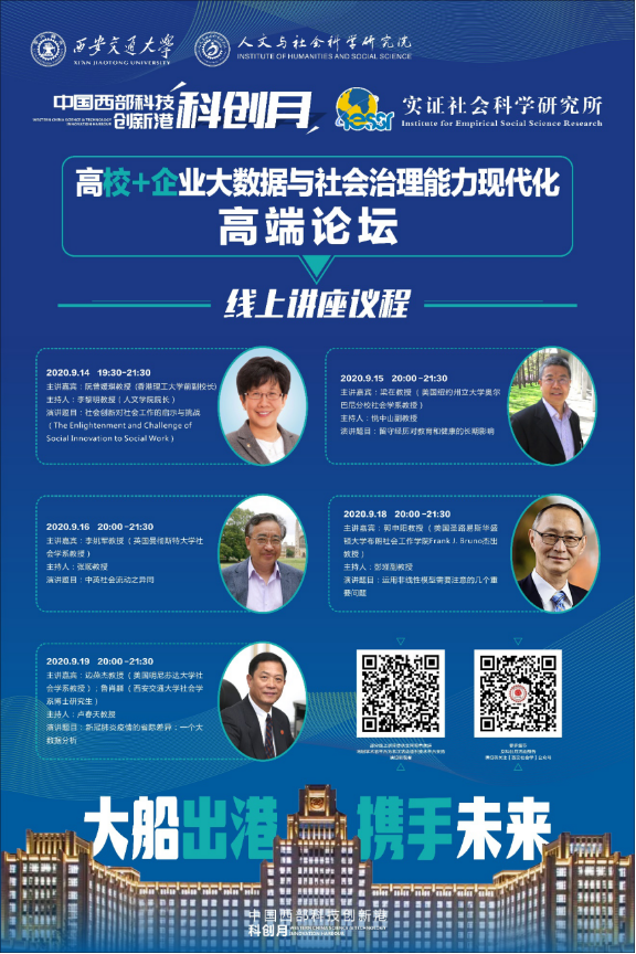 2020年9月13日,人文与社会科学研究院、实证社会科学研究所举办的科创月社会学系列活动——“高校+企业:大数据与社会治理能力现代化高端论坛”在中国西部科技创新港隆重开幕。社会学系全体教师、国产探花