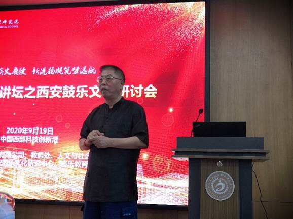音乐教育中心举办的科创月活动“艺术与设计名家讲坛之西安鼓乐文化”学术研讨会在创新港顺利召开。此次活动以“发扬新时代美育精神、传承西安鼓乐文化”为主题进行展开。