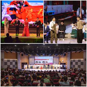 在2021年4月校庆文艺汇演活动中,音乐中心主任方小笛担任艺术指导,中文系教师李明、魏琛琳参与撰稿,中国文化班硕士留学生Farida担任主持人,他们将红色元素和西迁精神融入演出设计中,让观众浸入式体会交大的百年峥嵘与百年荣光。音乐中心金晨导演、中文系黎荔编剧,交大学生主演的原创音乐剧《西迁·西迁》通过“艺术+思政”的结合,展现出交大人听党指挥跟党走的情怀。在由音乐教育中心教师主要参与的“长征组歌”活动中,昂扬着交大人听党指挥跟党走,新长征路上立新功的豪迈与决心。