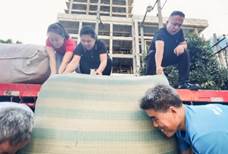 装载货物的过程,大家齐心协力,干劲十足!