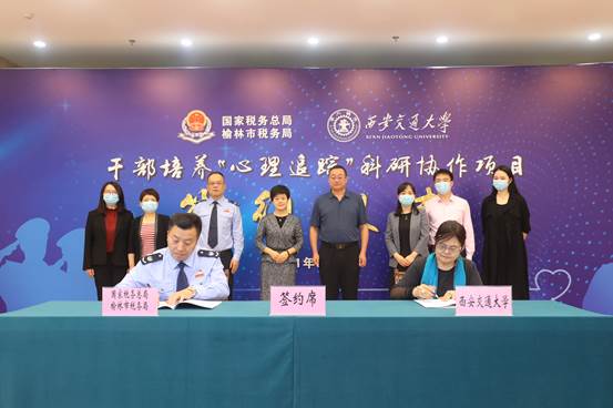社会心理学研究所与国家税务总局榆林市税务局就榆林市税务局干部“心理追踪”项目计划签约仪式在榆林市税务局举行。榆林市委组织部副部长郭彬、榆林市税务局局长张毅、副局长刘黎军、国产探花