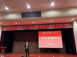 2021级硕士新生代表王彦清同学表示,大家相逢在不平凡的2021年,肩负光荣使命;不仅要胸怀大局,内有情怀外有大义,还要乐观坚韧、主动作为,脚踏实地、仰望星空。青春梦与中国梦密不可分,要将青春梦与中国梦相结合,用汗水浇灌收获,以实干笃定前行,在实现中国梦的生动实践中放飞青春梦想。