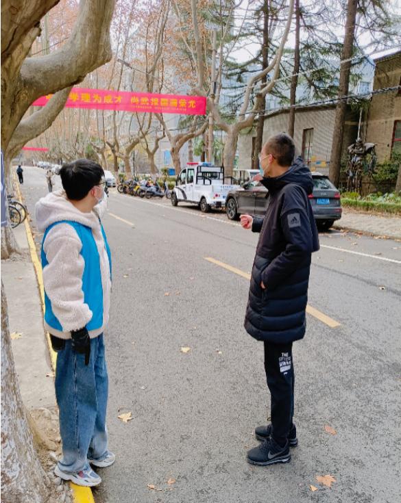 张婕:考前几位男生在十字路口分开去各自考场前,他们互相喊“加油”,听的我很惊喜,原来同学们真的会面对面加油打气。中午几位校外考生中午需要买快餐,他们没碰到餐车,和我一起的搭档学弟二话不说就跑到康桥苑给他们每人买了一份,考生一遍遍说着感谢,学弟说不客气,跟他们说下午还要加油啊!我们给每一位来问路的考生指完路之后,加上的一句“加油”,虽然举手之劳,但是我觉得对冰天雪地里的他们或是我们都是一份温暖和感动。