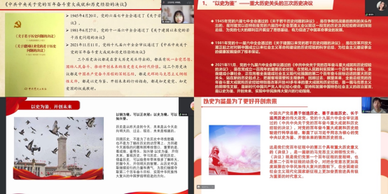 积极分子深入学习中国共产党第十九届六中全会精神,从全方位各角度理解“以史为鉴,开创未来”的历史与现实意义。刘保辰认识到:以史为鉴是为了更好开创未来。中国共产党是勇于创造历史、善于总结历史、长于运用历史的伟大政党。党的十九届六中全会审议通过的《中共中央关于党的百年奋斗重大成就和历史经验的决议》,对党的百年奋斗重大成就和历史经验进行科学总结,彰显了以习近平同志为核心的党中央以史为鉴、开创未来的强烈历史担当。鲁肖依说:以铜为镜,可以正衣冠;以史为镜,可以知兴替。历史是从昨天走到今天,未来是从今天走明天的,过去、现在、未来是相通的。回顾历史,不是为了在历史中寻找慰藉,也不是为了躺在历史的功劳簿上,为回避今天面临的问题和困难找借口。重要的是,看成败、鉴得失、知兴替以史为鉴,开创未来。重视历史、学习历史、研究历史、借鉴历史,可以给青年带来很多了解昨天、把握今天、开创明天的智慧。