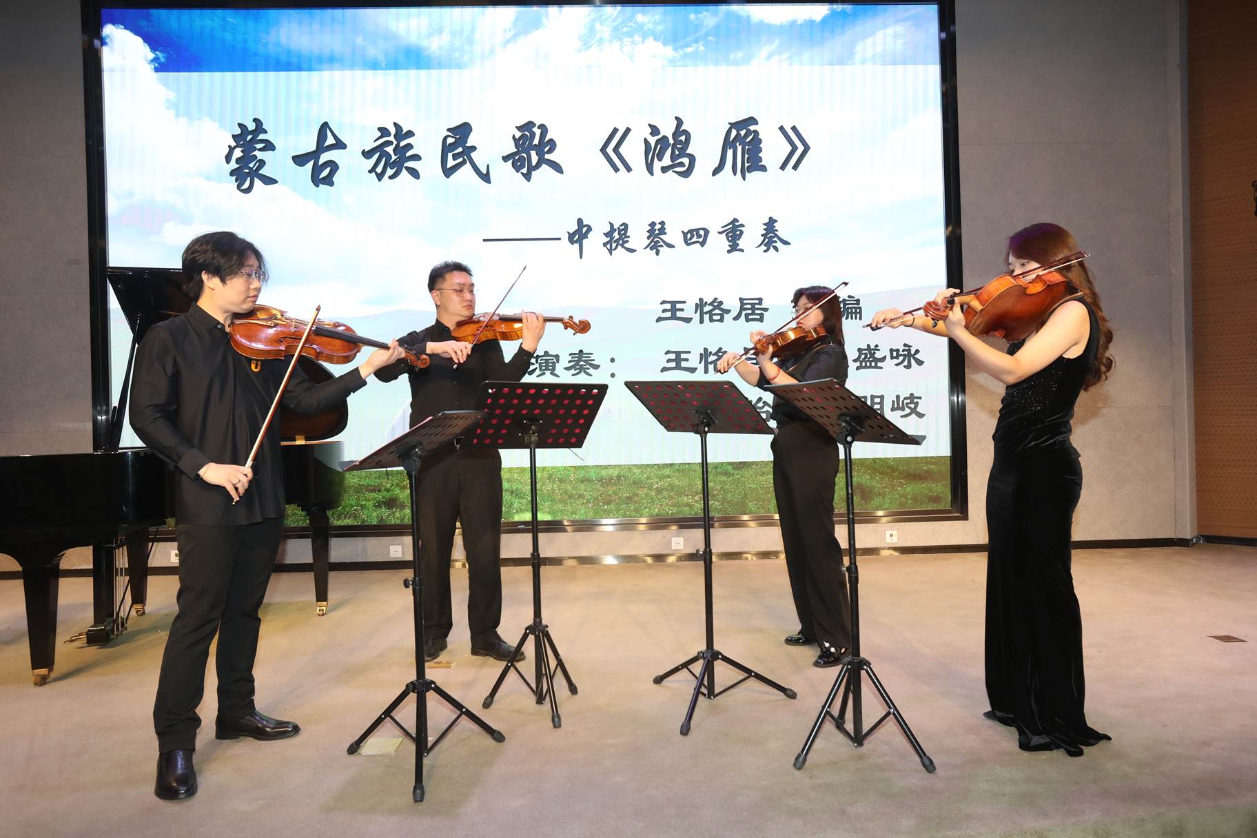21级博士研究生、来自西安音乐学院管弦系副主任、副教授、中提琴演奏家王恪居不但为大家带来弦乐四重奏《鸿雁》,还为现场的观众赠送了他录制的中提琴专辑。他说:“十多年前,在管晓宏院士主持下,由西安交大和西安音乐学院共同协作,在全国推广艺术与科学的交汇的研究成果,取得了非常良好的社会反应。我相信,这种多学科的交叉和实践活动在未来会为全社会带来更大的成果。而我也愿意奉上自己的一己之力,推动美育在全社会的普及。”