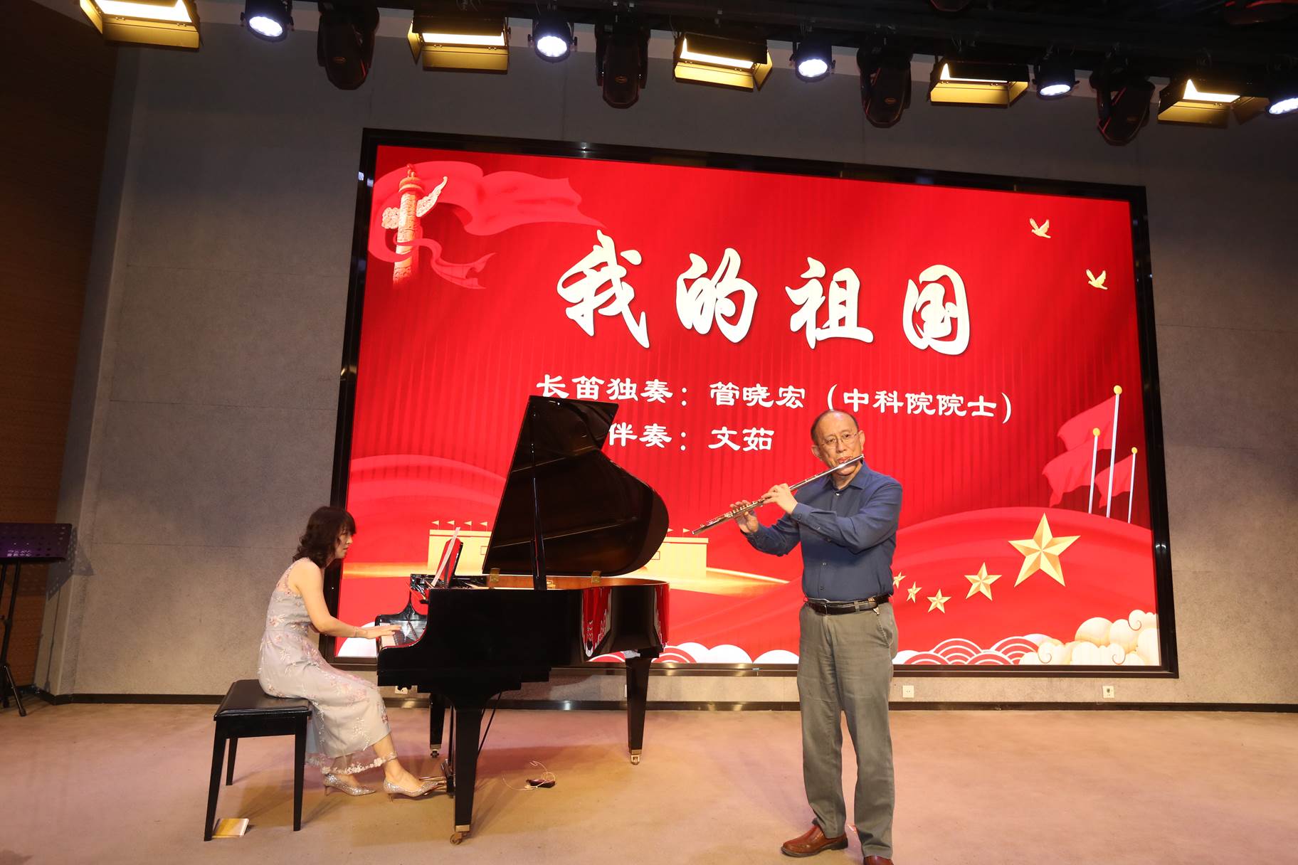 中国科学院院士管晓宏院士管院士是音乐的爱好者,也一直着力于艺术与科学的融合,在与文茹老师合奏完一曲《我的祖国》之后。他说:“西安交大近十年来一直在推进艺术与科学交汇的课题研究与成果普及,目前不但有面对普通民众和大学生的版本,还有针对中学生和小学生的。此项研究收到了中国科协、陕西省科协的全力支持。艺术与科学的交汇最早由钱学森学长倡导与推动,我们一定要把他的期望落到实处,把五育并举落到实处,为我们学校在双一流建设中取得更大的成就。”