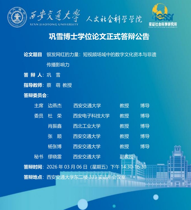 巩雪博士学位论文正式答辩公告